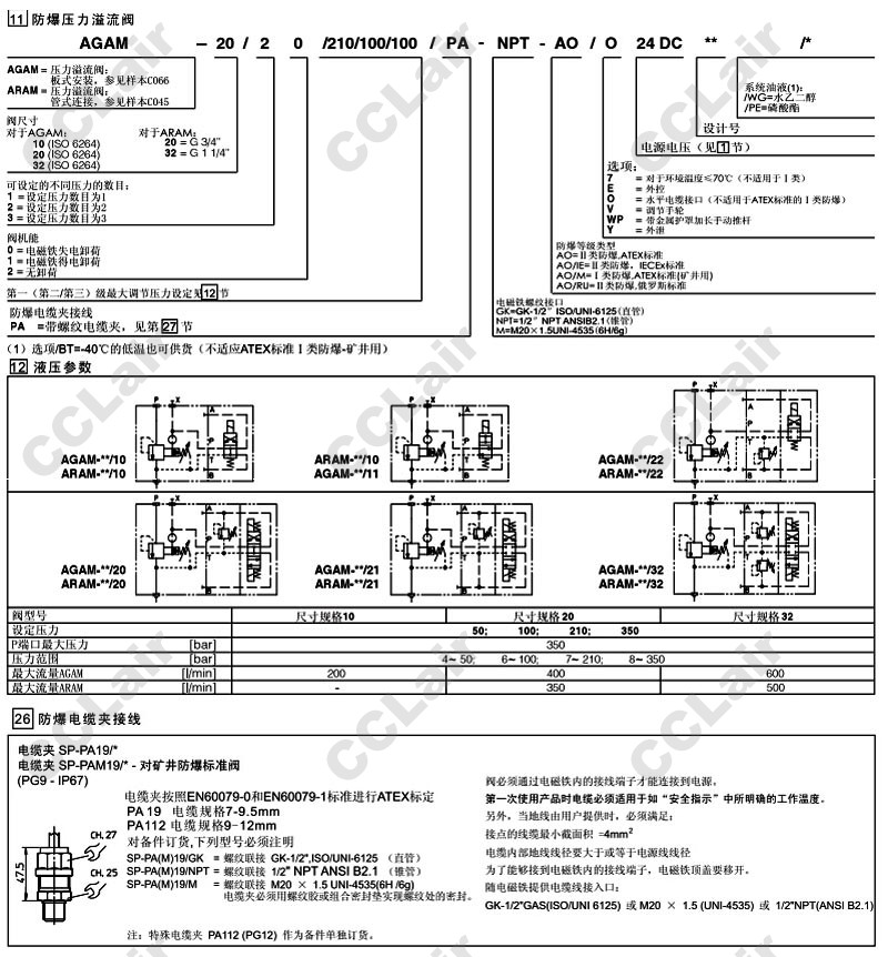 ARAM-20,ARAM-32,ARAM-20/22/50/50/PA-NPT-AO/O24DC,ARAM-20/22/50/50/PA-M-AO/O24DC,阿托斯ATOS防爆壓力溢流閥