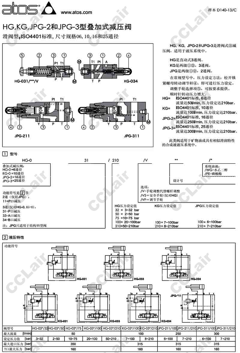 KG-031,KG-033,KG-034,KG-031/100/VF,KG-034/210/V,KG-033/100/V,阿托斯ATOS疊加式減壓閥 |
