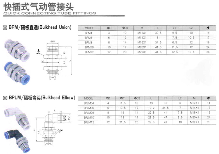 BPM4,BPM6,BPM8,BPM10,BPM12,BPLM04,BPLM06,BPLM08,BPLM10,BPLM12,快插式氣動管接頭