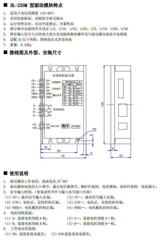 BL-230M,步進(jìn)電機(jī)驅(qū)動(dòng)器