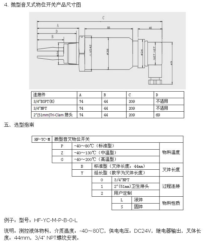 三、微型音叉式物位開關(guān)產(chǎn)品特點