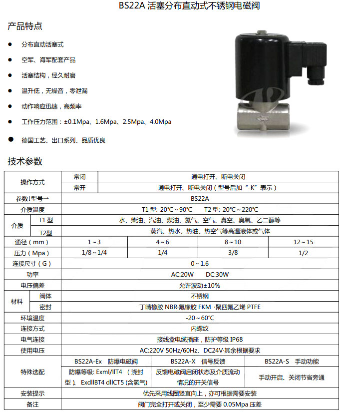 您當(dāng)前的位置:首頁 » 產(chǎn)品&解決方案 » BS22A-DN1,BS22A-DN3,BS22A-DN4,BS22A-DN6,BS22A-DN8,不銹鋼電磁閥