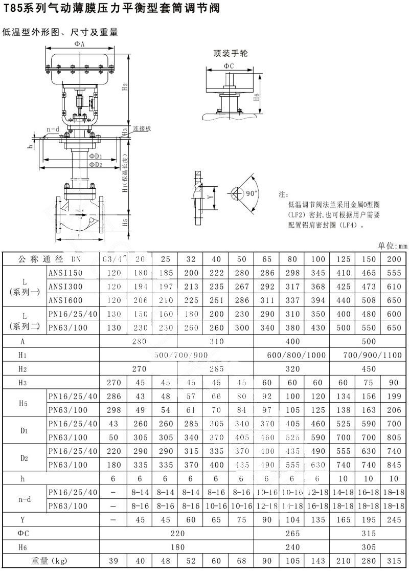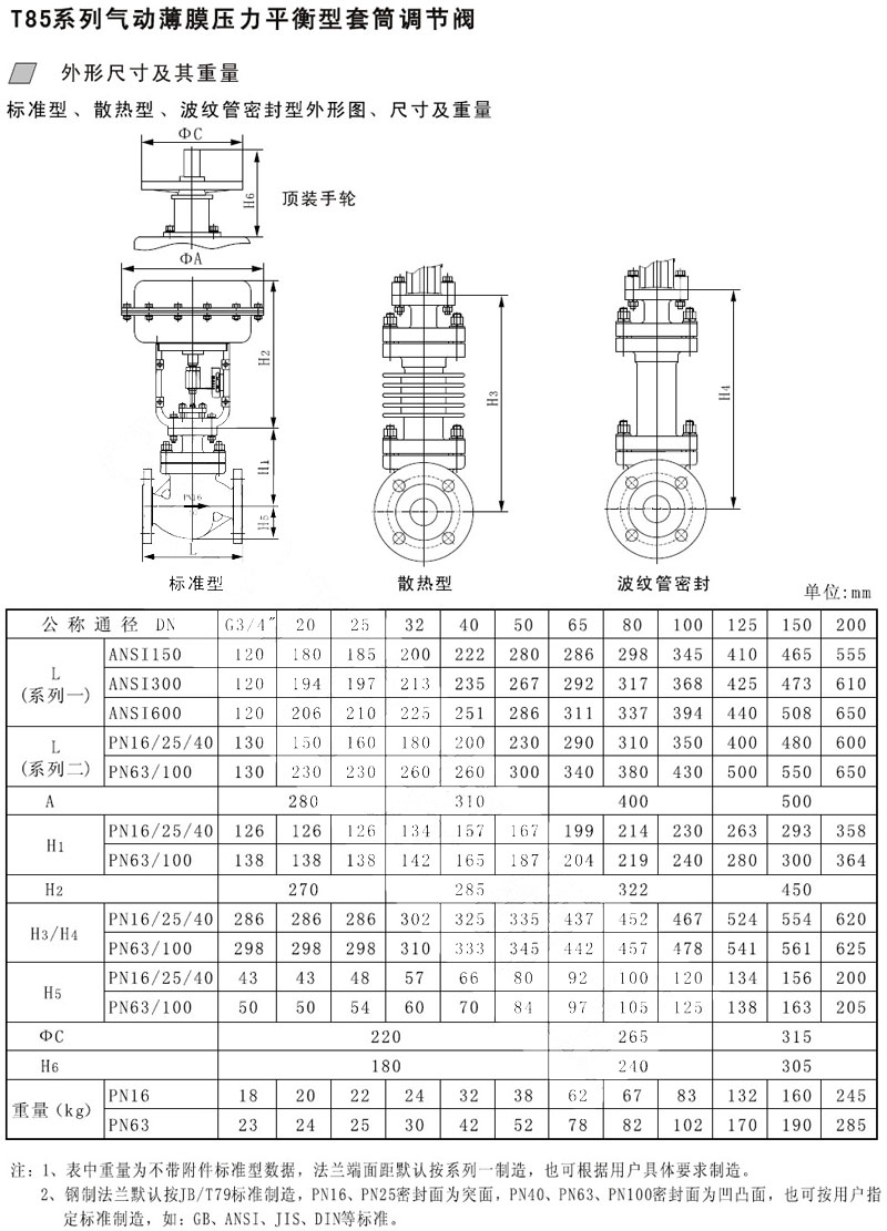 T85-16C-DN50,T85-40C-DN32,T85-63C-DN40,T85-100C-DN20,壓力平衡型套筒調(diào)節(jié)閥