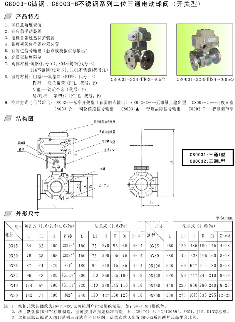 C80031-15,C80031-20,C80031-25,C80031-32,C80031-40,C80031-50,不銹鋼電動(dòng)三通球閥