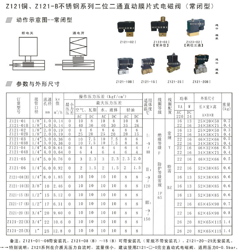 Z121-01,Z121-02,Z121-03,Z121-04,Z121-05,Z121-06,Z121-08,直動(dòng)活塞式電磁閥