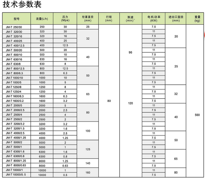 JM-T-2000/5,JM-T-2000/2.5,JM-T-2500/4,JM-T-2500/2,JM-T-3200/3.2,JM-T-4000/2.5,