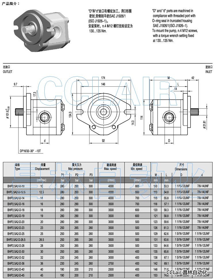 詳細(xì)信息 BAP2.5A2-D-10,BAP2.5A2-D-12.5,BAP2.5A2-D-14,齒輪泵