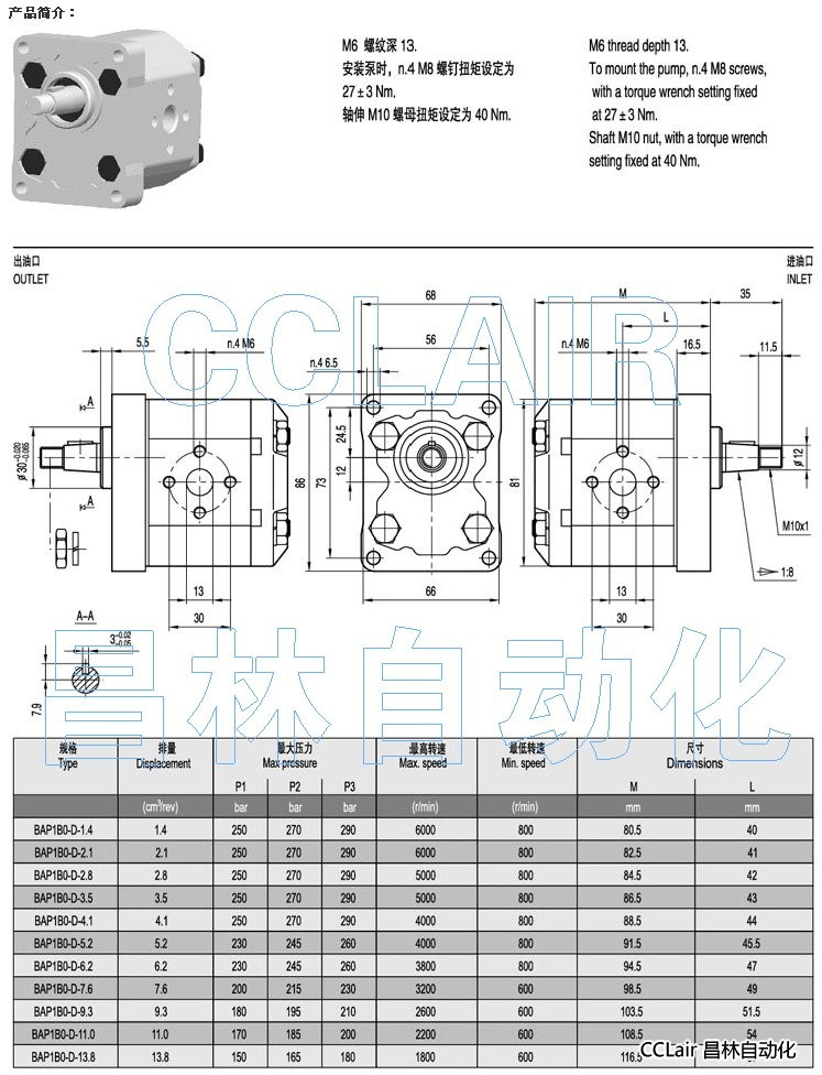 詳細(xì)信息 BAP1B0-D-1.4,BAP1B0-D-2.1,BAP1B0-D-2.8,齒輪泵