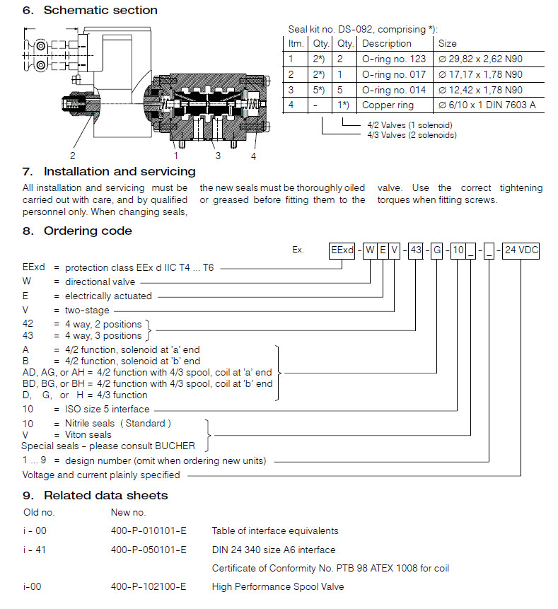 EExd-WEV-42-A,EExd-WEV-42-B,EExd-WEV-43-A,EExd-WEV-43-B,Bucher方向閥