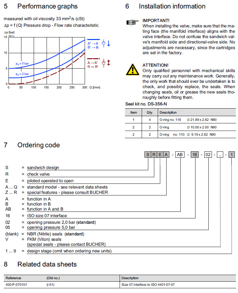 SREA-A-16-02-1,SREA-B-16-02-1,SREA-AB-16-02-1,SREA-A-16-05-1,SREA-B-16-05-1,Bucher止回閥