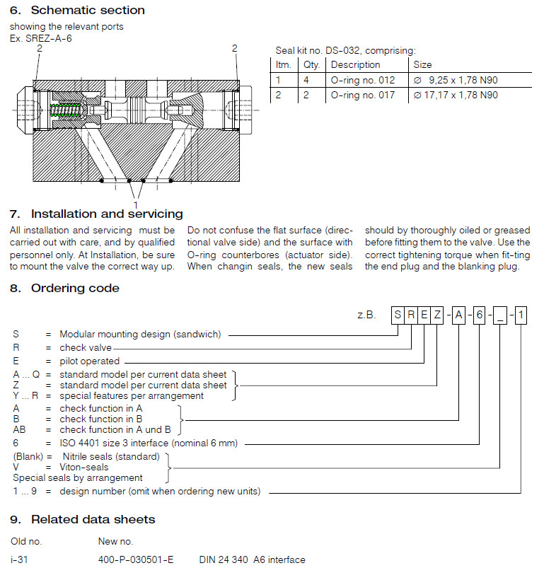 SREZ-A-6-1,SREZ-B-6-1,SREZ-AB-6-1,SREZ-A-6-V-1,SREZ-B-6-V-1,SREZ-AB-6-V-1,Bucher模塊安裝止回閥
