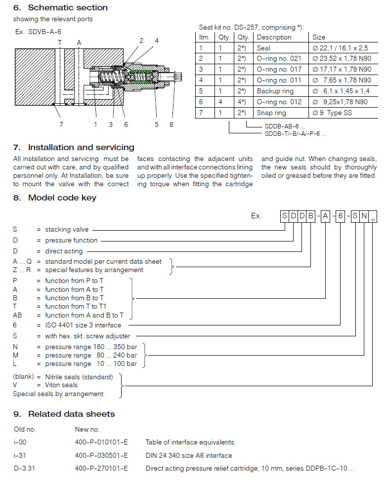 SDDB-A-6-SN,SDDB-P-6-SN,SDDB-B-6-SN,SDDB-T-6-SN,SDDB-AB-6-SN,Bucher卸壓閥