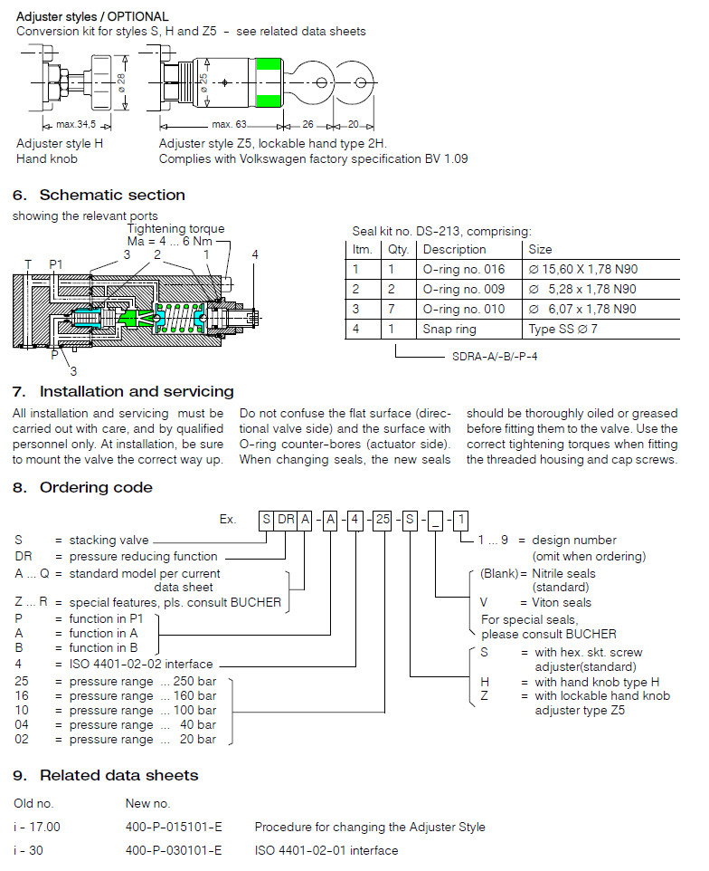 SDRA-A-4-25,SDRA-P-4-16,SDRA-A-4-25,SDRA-B-4-04,SDRA-A-4-10,Bucher減壓閥