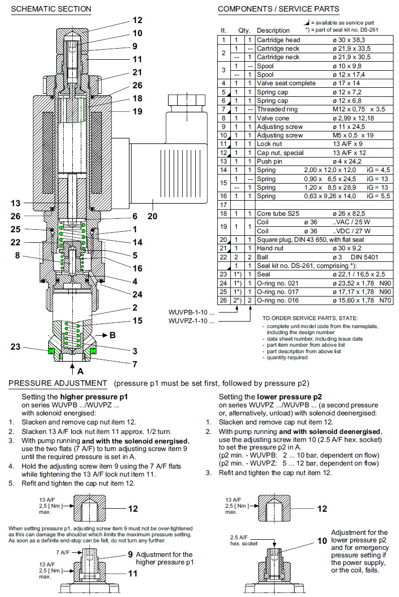 詳細信息 WUVPB-1MCO-10-1,WUVPB-1LCO-10-1,WUVPB-1NCO-10-1,Bucher電磁控制壓力安全閥