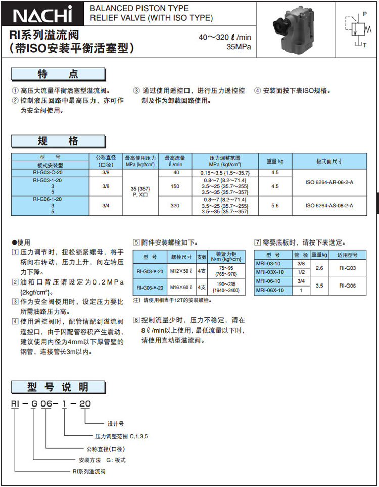 RI-G03-C-20,RI-G03-1-20,RI-G06-1-20,RI-G06-3-20,RI-G03-5-20,RI-G06-5-20,RI-G03-3-20,NACHI溢流閥
