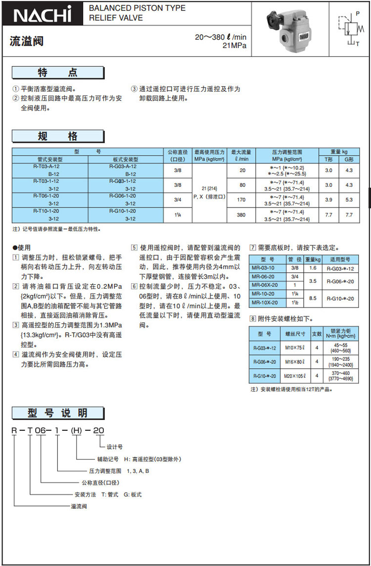 R-T03,R-T06,R-T10,R-G03,R-G06,R-G10,R-T03-A-12,R-T10-3-12,R-T06-3-12,R-G06-3-12,R-G10-3-12,NACHI溢流閥