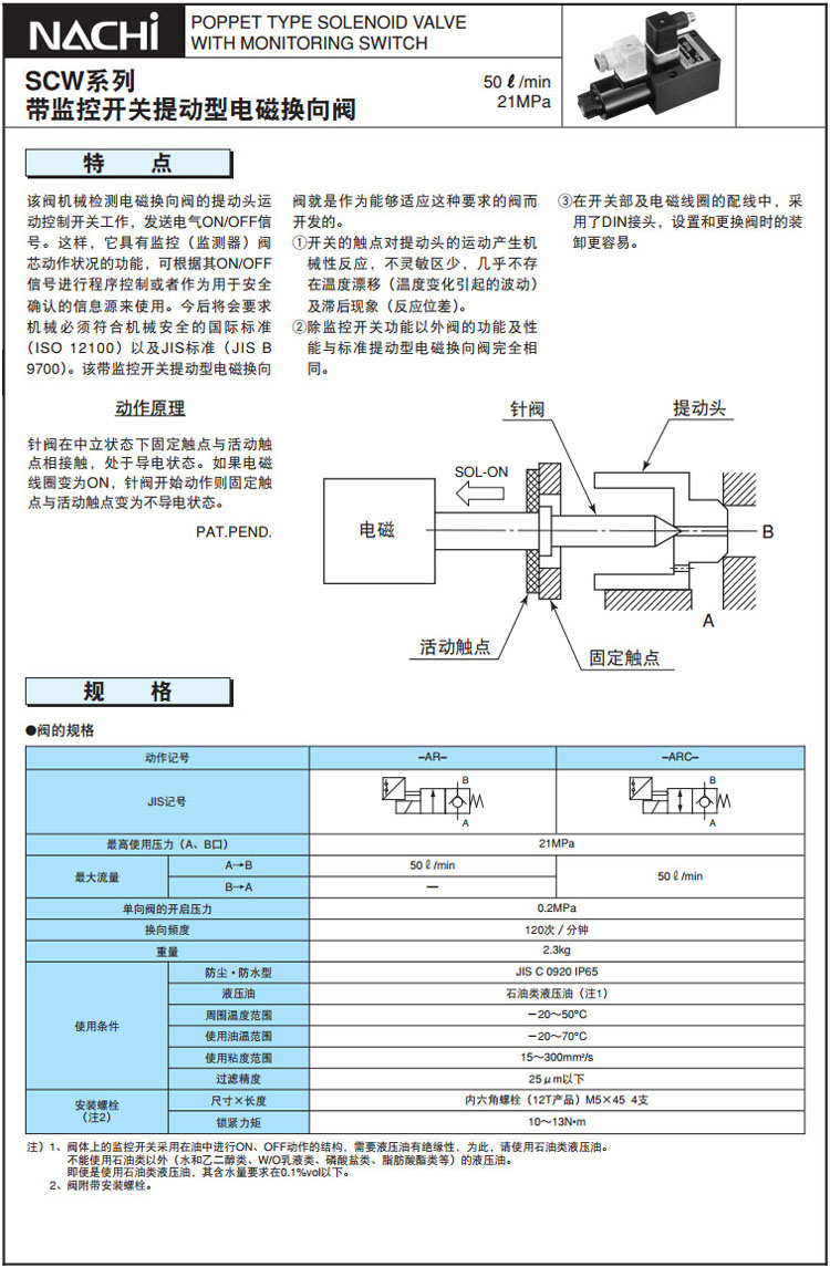 詳細(xì)信息 SCW-G03-AR-GR-D1-J10,SCW-G03-AR-E1-J10,SCW-G03-AR-R-E230-J10,NACHI電磁換向閥