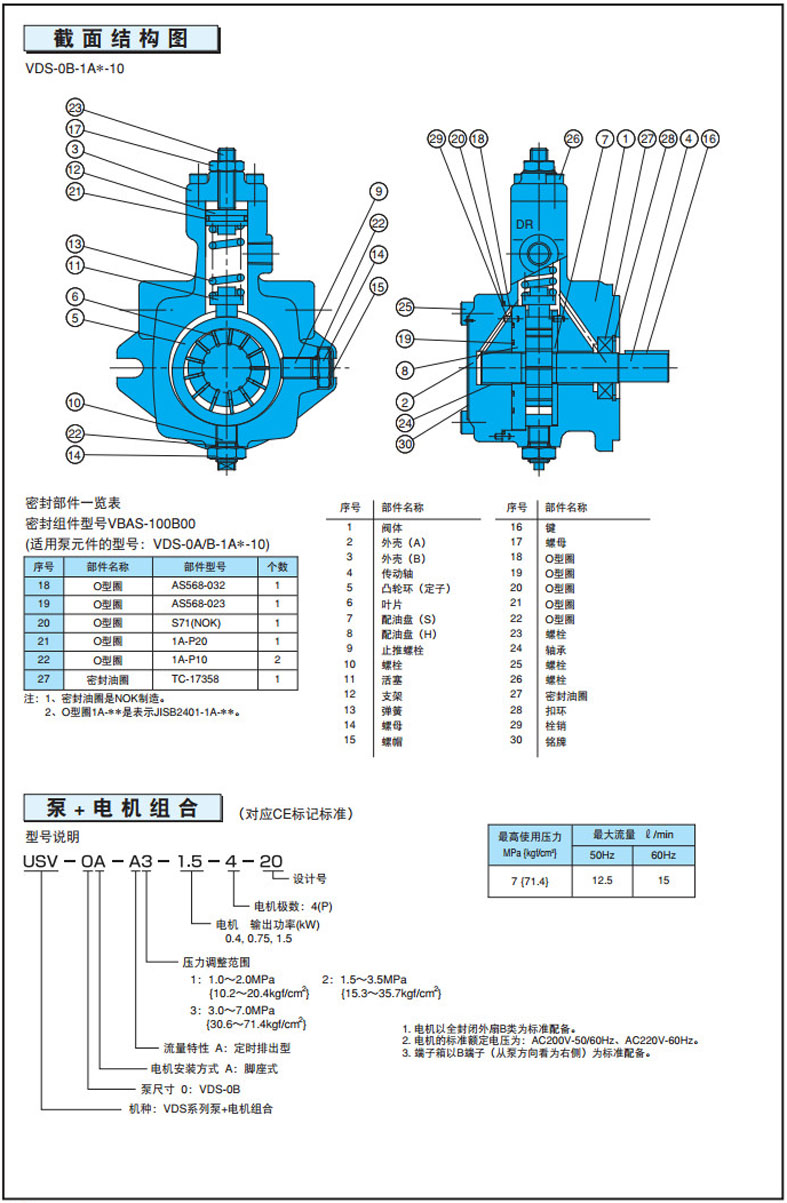 詳細信息 USV-0A-A1,USV-0A-A2,USV-0A-A3,USV-0A-A1-0.4-4-20,USV-0A-A3-0.75-4-20,NACHI泵+電機組合