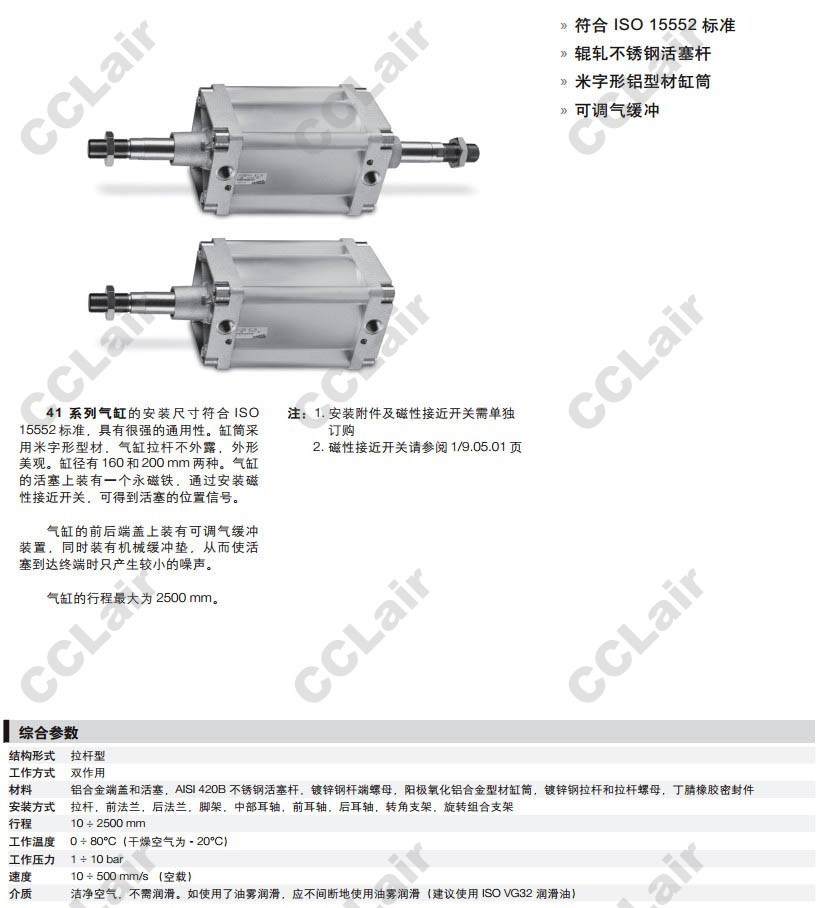 41M2P160A050,41M3P160A0100,41M2P200A0200,41M3P200F0400,41M4P160F0500,camozzi氣缸