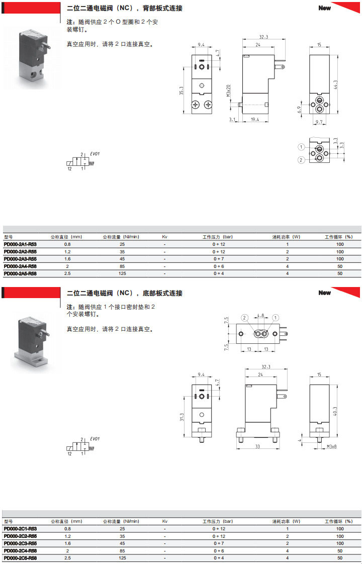 PD000-2A1-R51,PD000-2A5-F52,PD000-2E1-R53,PD000-2A2-R55,camozzi直動式微型電磁閥