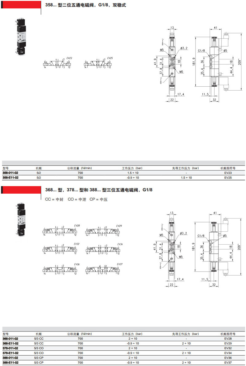 338D-011-02-G77,348D-016-02-G77,354D-E11-02-G77,368L-E15-02-G77,camozzi電磁閥