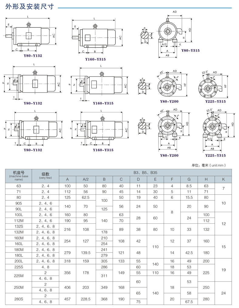 YH200L-2,YH200L-4,YH200L-6,YH200L-8,YH225S-4,YH225S-8,YH225M-2,YH225M-4,YH225M-6,YH225M-8,
