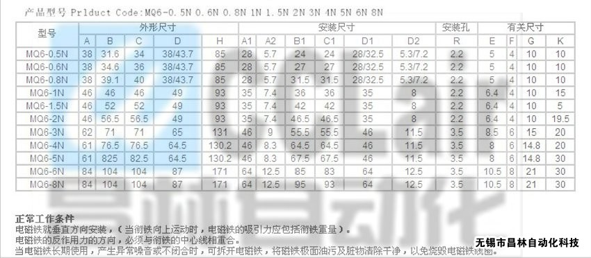 MQ6-0.5N,MQ6-0.6N,MQ6-0.8N,MQ6-1N,MQ6-1.5N,MQ6-2N,MQ6-3N,交流牽引電磁鐵
