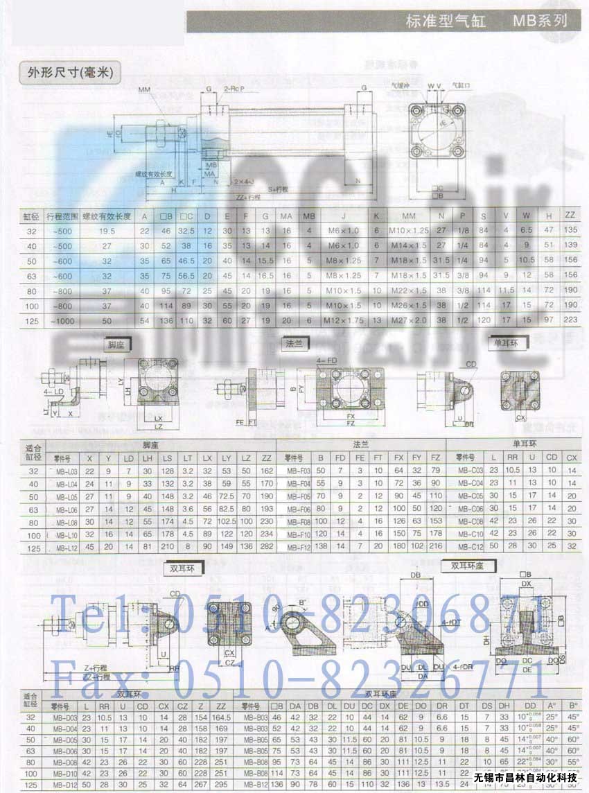 詳細(xì)信息 MBL100-25,MBL100-50,MBL100-75,MBL100-100,標(biāo)準(zhǔn)型氣缸,生產(chǎn)廠家,價(jià)格