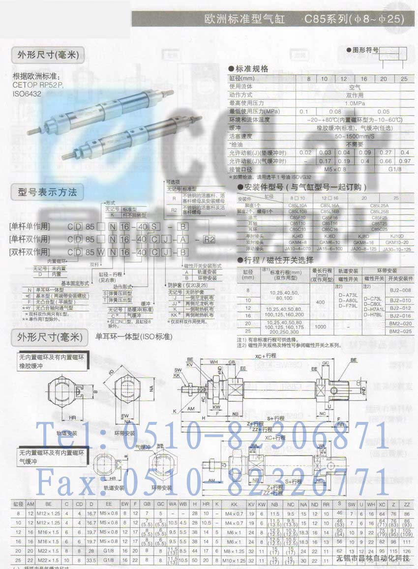 詳細(xì)信息 CD85WE25-125CKK-A,CD85WE25-160CKK-A,CD85WE25-175CKK-A,標(biāo)準(zhǔn)型氣缸,生產(chǎn)廠家,價(jià)格