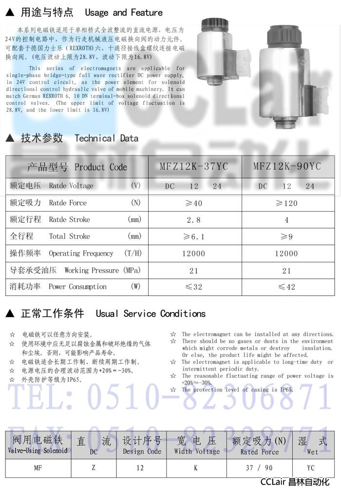 詳細(xì)信息 MFZ12K-37YC,MFZ12K-90YC,寬電壓直流濕式閥用電磁鐵