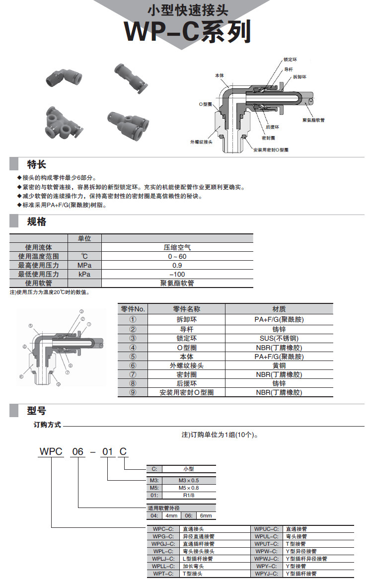 詳細信息 WPC04,WPL04,WPT04,WPLL04,WPUC04C,WPLJ04C,WPUL04C,WPY04C,WPLL06,小型快速接頭