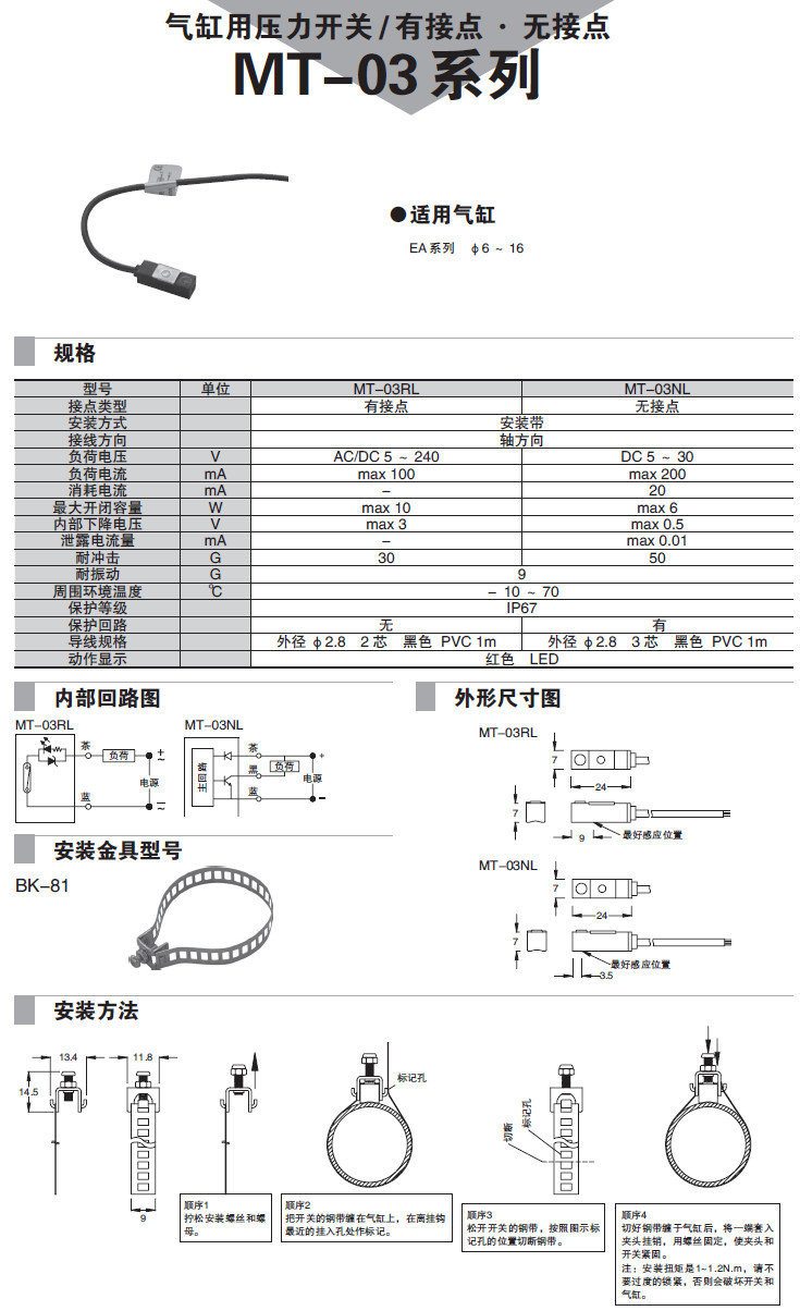 詳細(xì)信息 MT-03RL,MT-03NL,氣缸用壓力開關(guān)
