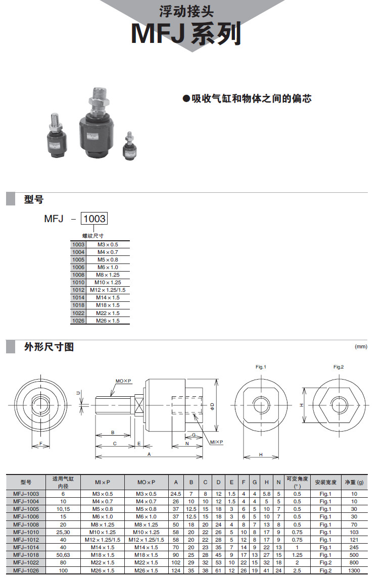 MFJ-1003,MFJ-1004,MFJ-1005,MFJ-1006,MFJ-1008,MFJ-1010,浮動接頭
