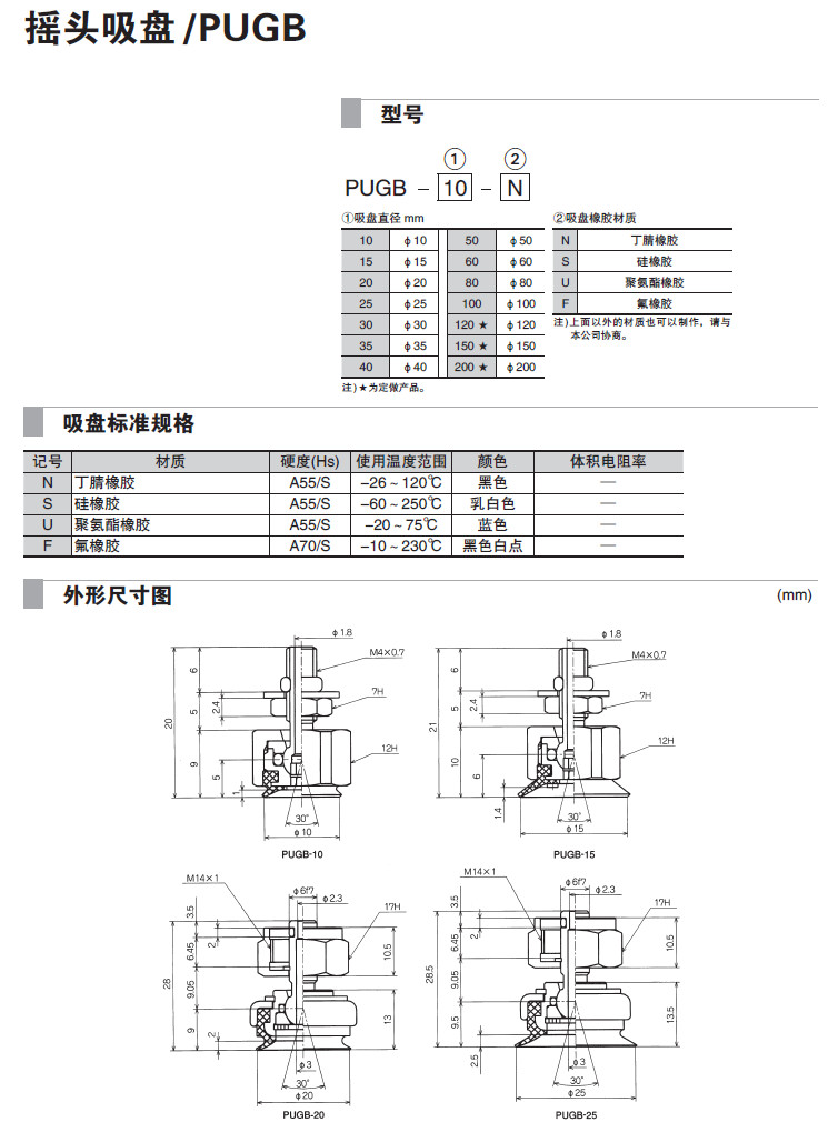 PUGB-10,PUGB-15,PUGB-20,PUGB-25,PUGB-30,PUGB-35,PUGB-40,PUGB-50,吸盤