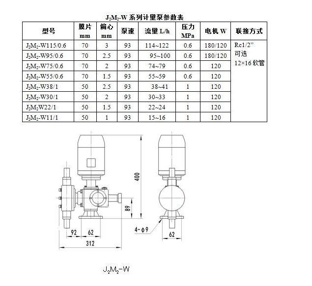 J2M2-W115/0.6,J2M2-W95/0.6,J2M2-W75/0.6,J2M2-W55/0.6,J2M2-W38/1,J2M2-W型機械隔膜式計量泵