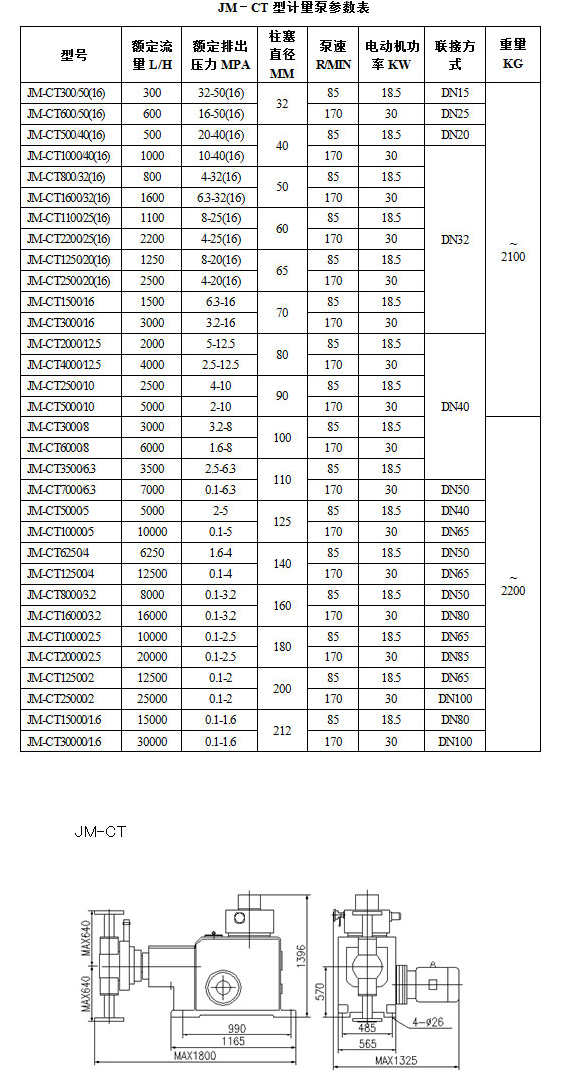 JM-CT300/50(16),JM-CT600/50(16),JM-CT500/40(16),JM-CT1000/40(16),JM-CT液壓隔膜式計(jì)量泵