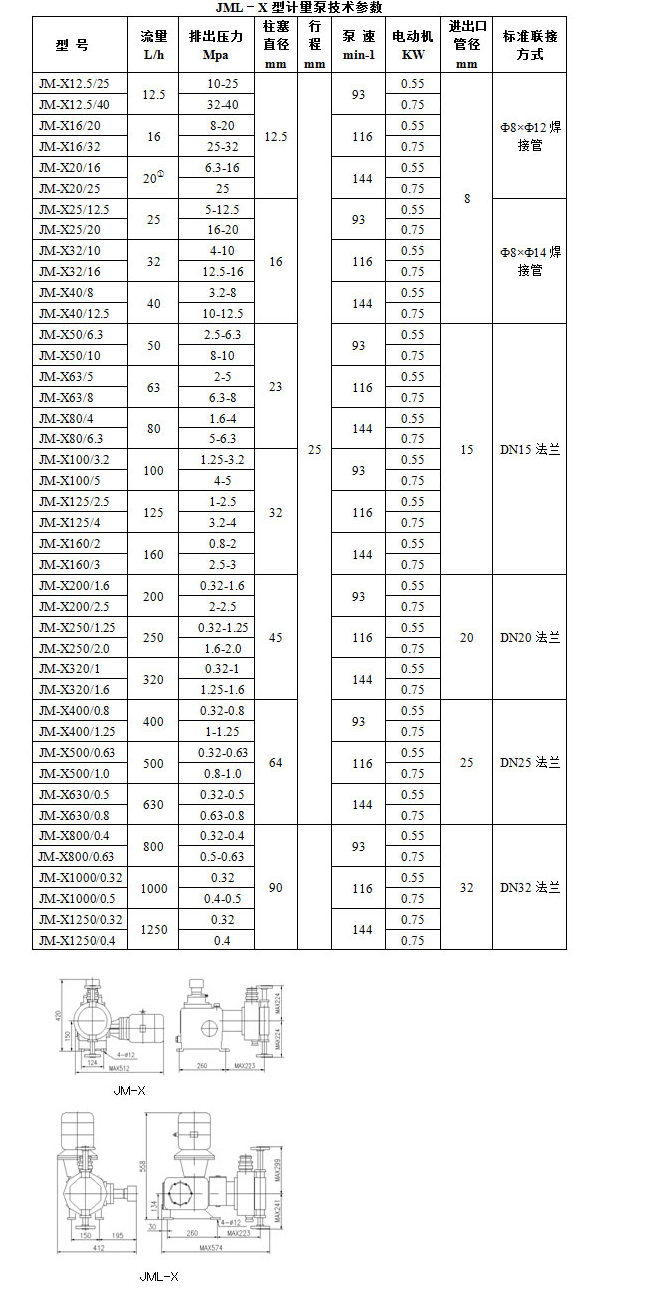 JML-X12.5/25,JML-X12.5/40,JML-X16/20,JML-X16/32,JML-X20/16,JML-X20/25,JML-X液壓隔膜式計量泵