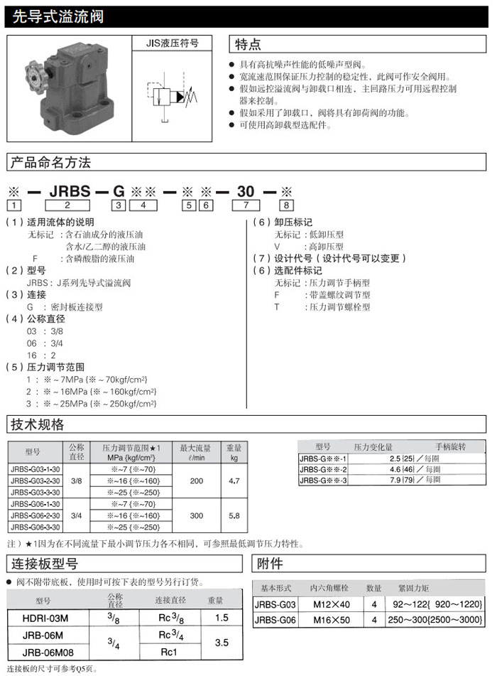 JRBS-G03,JRBS-G06,JRBS-G16,JRBS-G03-1-30,JRBS-G06-1-30,RBS-G16-1-30,DAIKIN先導(dǎo)式溢流閥