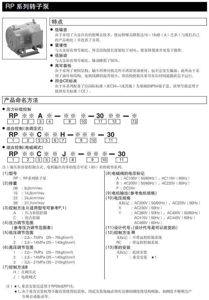 RP08A,RP15A,RP15C,RP23A,RP23C,RP38A,RP38C,RP08A1-07-30,RP15A1-15-30,DAIKIN轉子泵