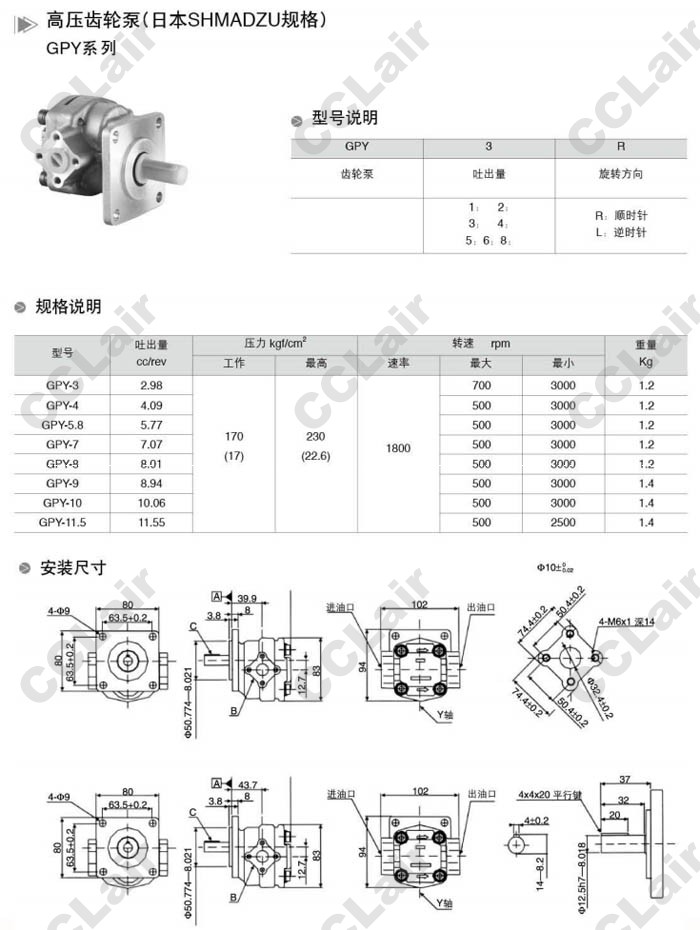 GPY-3-R,GPY-4-R,GPY-5.8-R,GPY-7-R,GPY-8-R,GPY-9-R,GPY-10-R,GPY-11.5-R,高壓齒輪泵