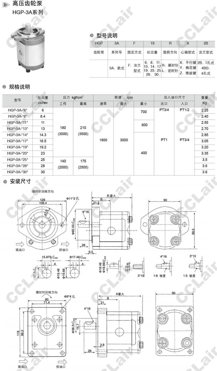 詳細(xì)信息 HGP-3A-F-6RX-2B,HGP-3A-F-8RX-2B,HGP-3A-F-11RX-2B,HGP-3A-F-13RX-2B,高壓齒輪泵