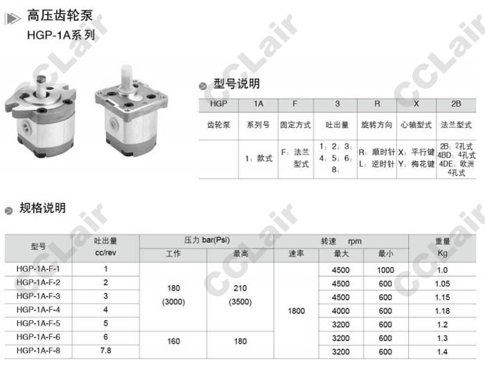 HGP-1A-F-1,HGP-1A-F-2,HGP-1A-F-3,HGP-1A-F-4,HGP-1A-F-5,HGP-1A-F-6,HGP-1A-F-8,高壓齒輪泵