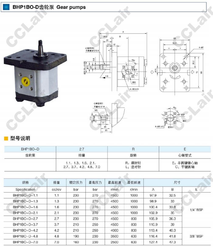 BHP1BO-D-1.1,BHP1BO-D-1.3,BHP1BO-D-1.6,BHP1BO-D-2.1,BHP1BO-D-2.7,齒輪泵