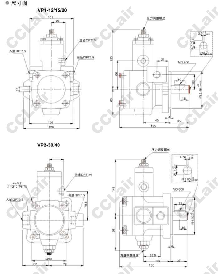 型號(hào): VP1-12,VP1-15,VP1-20,VP2-30,VP2-40,VP1-12-A1-R,VP2-30-A1-R,低壓變量葉片泵