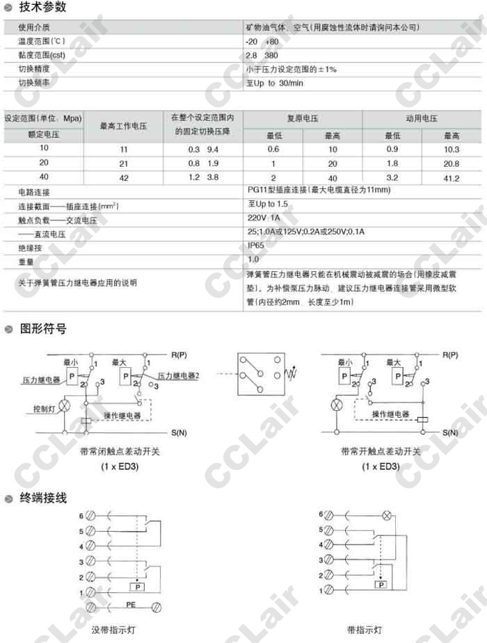 型號: ED30A30-100,ED30A30-200,ED30A30-400,ED30A30-400-L220V,ED30A30-400-L110V,彈簧管壓力繼電器