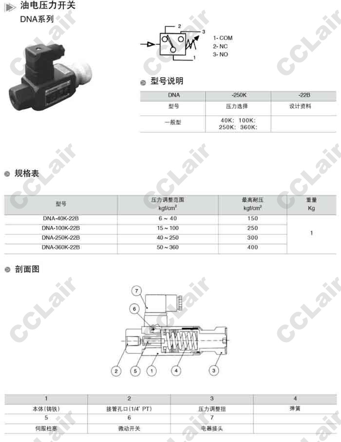 DNA-40K-22B,DNA-100K-22B,DNA-250K-22B,DNA-360K-22B,油電壓力開關(guān)
