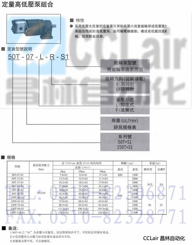 150T-61-L-R-S1,150T-61-F-L-S1,150T-61-F-R-S1,定量高低壓泵組合,