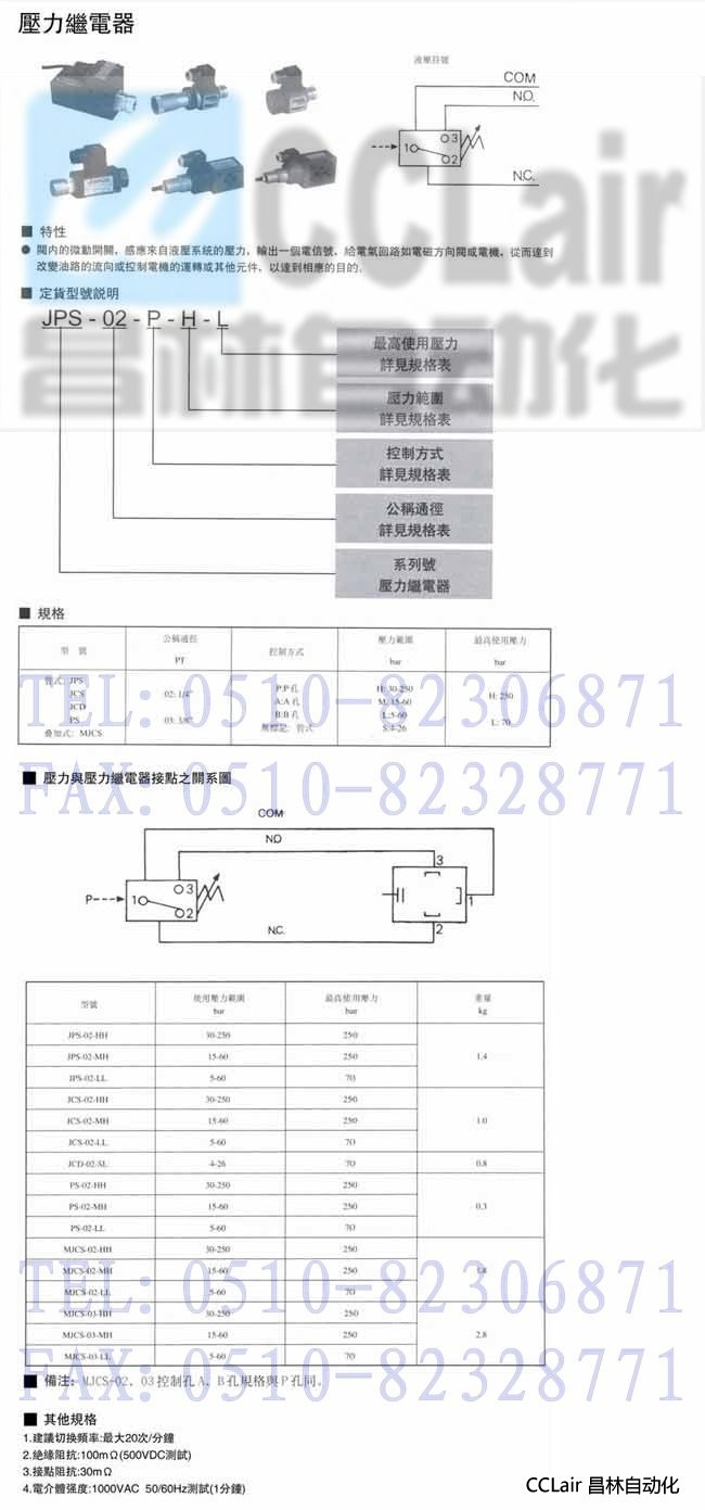 JPS-02-HH,JPS-02-HL,JPS-02-MH,JPS-02-ML,JPS-02-LH,壓力繼電器 ,