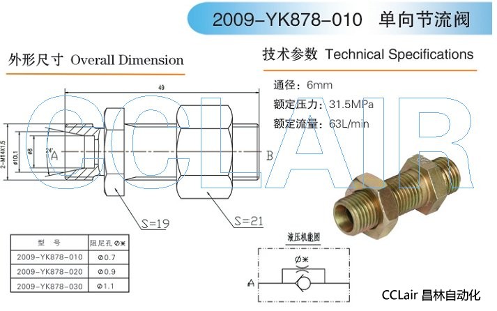 2009-YK878-010,2009-YK878-020,2009-YK878-030,單向節(jié)流閥