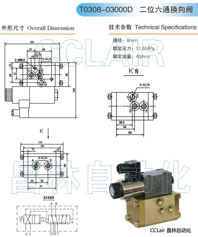 型號: T0308-03000D,二位六通換向閥